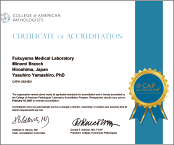 We have obtained certification as a laboratory based on a world-standard quality management system through the Laboratory Accreditation Program (LAP) of the College of American Pathologists (CAP), a global clinical testing certification system.